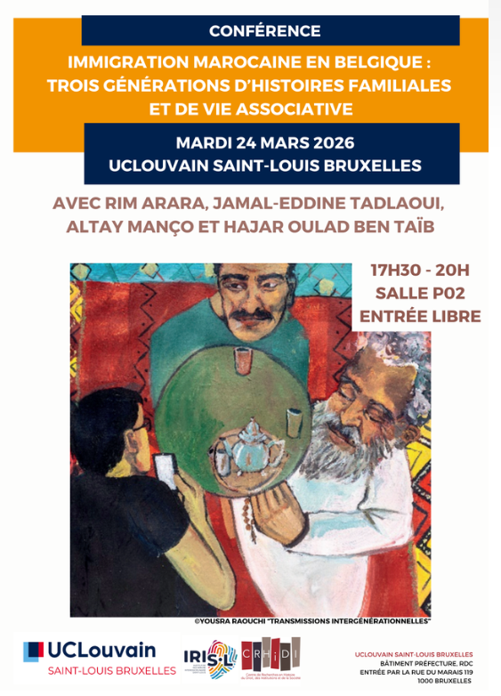 Cette soirée propose de revenir sur l’histoire de l’immigration marocaine en Belgique à partir d’histoires familiales et en retraçant la manière dont la vie associative s’organise au sein de la communauté marocaine de Belgique sur trois générations. La discussion s’appuie sur l’ouvrage de Rim Arara et de Jamal-Eddine Tadlaoui (Université de Montréal), Constructions identitaires et stratégies familiales. Trois générations marocaines et la vie associative en Belgique (L’Harmattan, 2023). Cet ouvrage analyse le rôle de la famille et des associations comme espaces de transmission, de médiation et de participation citoyenne.